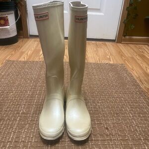 Elegant design with Hunter logo. Beige tone enhances style. Condition: Pre-owned with normal signs of wear such as light marks and discoloration from use, shown in photos.