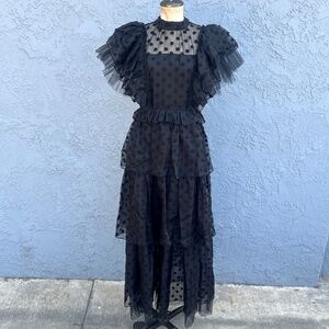 Hunter Bell Annabel Tiered Mock Neck Ruffle Black Lace Gown NWT goth dress
