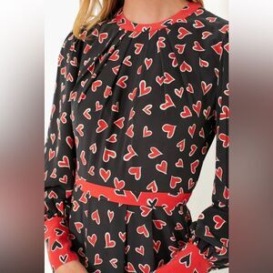 Chic black midi dress with red accents. Features long sleeves and a flattering fit. Perfect for any occasion.