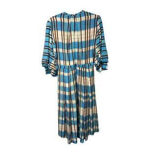 Hunter Bell Blue Cream Brown Hawthorne Plaid 100% Silk Casper Dress Womens 10