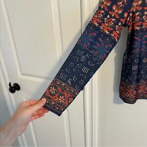 I love this super gorgeous high end designer Hunter Bel blue orange/red floral printed long sleeve turtleneck top/blouse