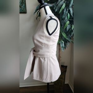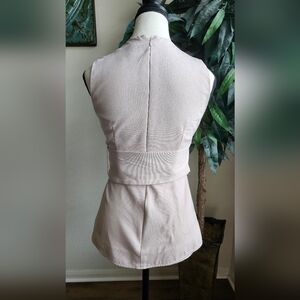 Pink ponte (65% Rayon, 30% Nylon, 5% Spandex). Top. Sleeveless. Crew neckline. Hidden back zipper closure. Fully lined. Attached belt. Made in the USA.