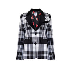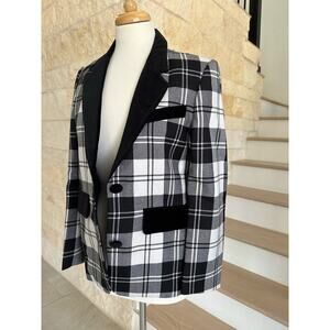 Hunter Bell Catherine Blazer Black White Plaid Checkered Large NEW