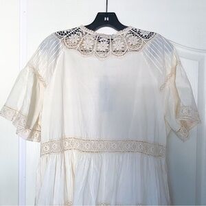 Hunter Bell Dress Newton Lace Pintucked Buttoned Tiered Mini Cream M NWT