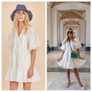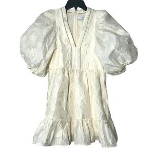 Hunter Bell Gaille Mini Dress Jacquard Ivory Flowers size XS Puff Sleeve Bridal