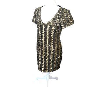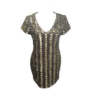 Hunter Bell Geometric Gold Sequin Sheath Mini Dress – Size 8