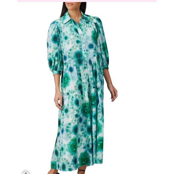 Hunter Bell Green Babydoll Maxi Dress XS Boho Tiered Ruffle Cottage Cotton $400