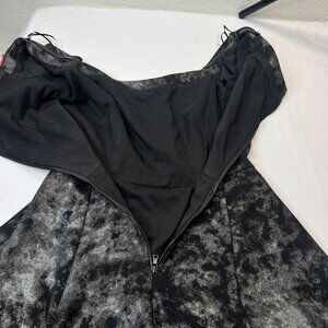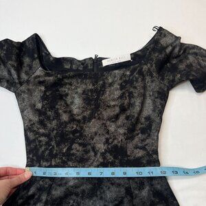 Hunter Bell Metallic Marble Mini Skater Dress Black Silver Gold XS