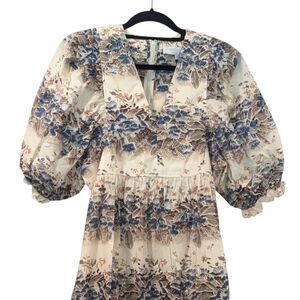 Hunter Bell Palmer Puffed Sleeve Misty Morning Midi Dress Size Small