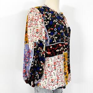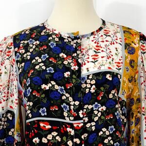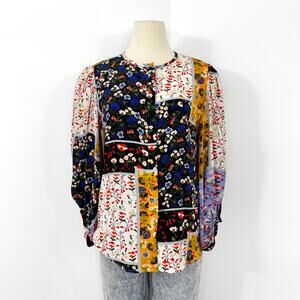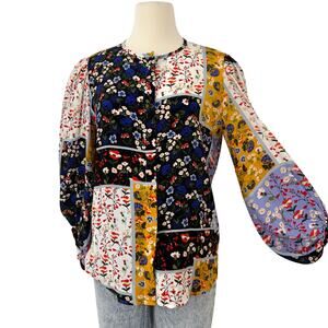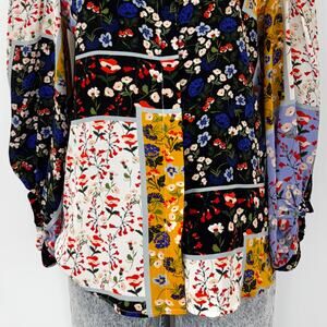 Hunter Bell Silk Finley Blouse Wildflower Patchwork Button-Down Shirt Blouse S
