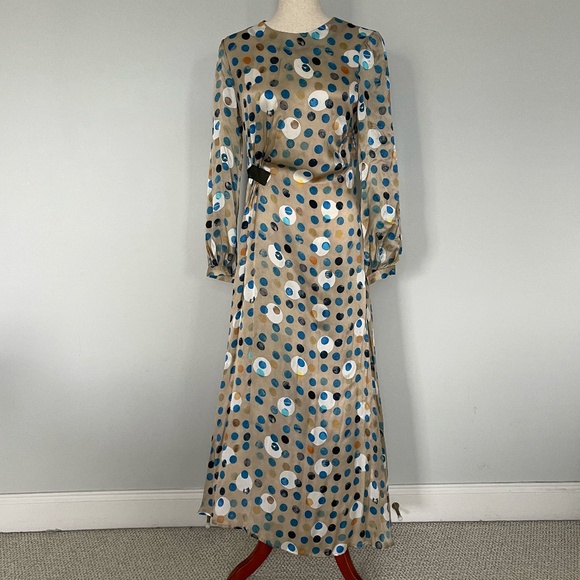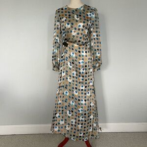 Hunter Bell Tan with Blue Polka Dot Dress - Size 4