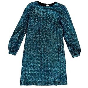 Hunter Bell, sequin mini dress, turquoise sparkle dress, size 0, long sleeve party dress, holiday glam, cocktail outfit, NYE dress, shimmer dress, event wear, standout style