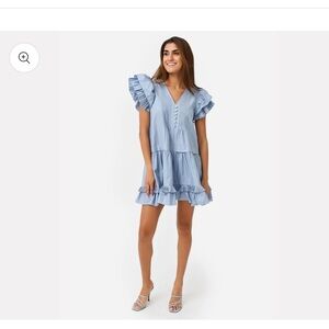 Scalloped-trim mini dress with pin-tucked and pleated details.