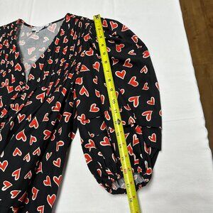 Hunter Bell Womens Jenkins Heart Print Dress Size Small Puff Sleeve Valentines