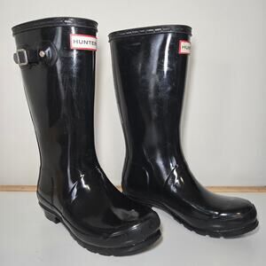 Hunter Big Kids Original Gloss Black Rain Boots Size US 3/UK 2