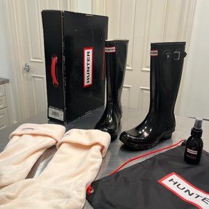 Hunter Original Black Gloss Rainboots. Women's Size 6 (EU 37). I wear a women's 6 or 6.5 and purchased the kid's version. Excellent condition. I am including the original box, dust bag, boot liners, and Hunter Boot Buffer spray.