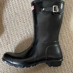 Hunter Black Rain Boots - Glossy Original Short Adjustable - Women's Size 7