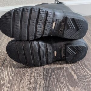 Stylish blue tall rain boots by Hunter. Perfect for rainy days. slight wear on treads but still lots of use. Some scuff marks. See photos.