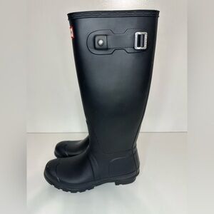 Stylish Hunter rain boots. Matte black with separate white full foot knitted cuffs. Perfect for winter weather!! Only tried on once.