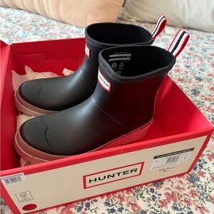 Hunter short boots with a speckled sole. Sleek and versatile design. Women’s size 8.