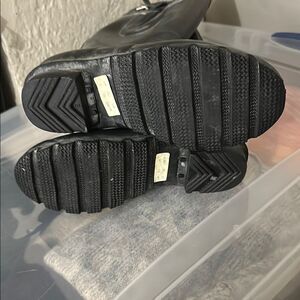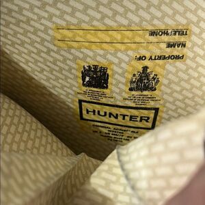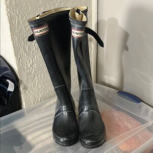 Stylish black rain boots by Hunter. Perfect for wet weather.