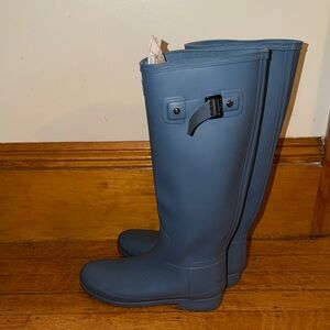 Hunter rainboots in a matte blue. US Women’s size 7. 100% waterproof, tall boots with the adjustable strap at the top! Open to offers 🩵