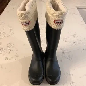 Cable Knit Cuff Tall Boot Socks are designed to complement Tall Wellington Hunter Boots.