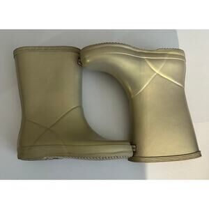 Your little one will love splashing in puddles with these adorable Hunter rain boots! These boots are in shimmery gold and are a kids' size US 13 B / 1 G. They are in excellent condition and ready for a new home. Perfect for rainy days or just adding a touch of sparkle to any outfit!
