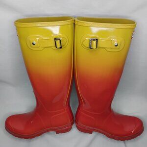 Hunter Boots Rain Tall Glossy Wellies Like New Rare Sunset Ombre Coral Yellow 7