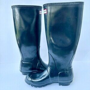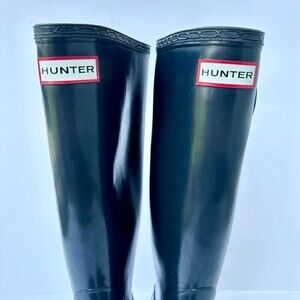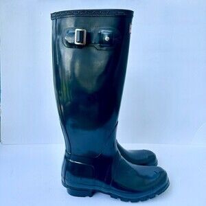 Hunter Boots Women's Original Tall Gloss Rain Boot Navy Size 7
