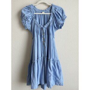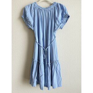 Hunter & Brown Women’s XL Blue Linen Blend Square Neck Tie Front Peasant Dress