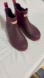Stylish burgundy ankle rain boots by Hunter. Perfect for wet weather.