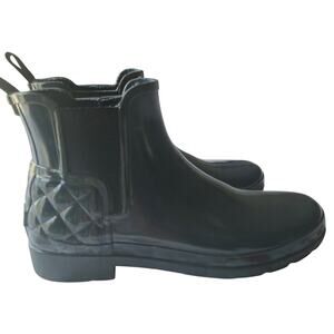 Hunter Chelsea Slip on Quilted Rubber Rain Waterproof Army Dark Green Boot US 9