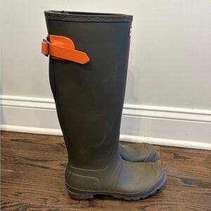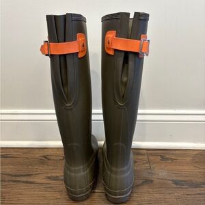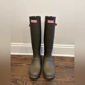 Durable olive boots for wet weather. Iconic design with a sleek finish.