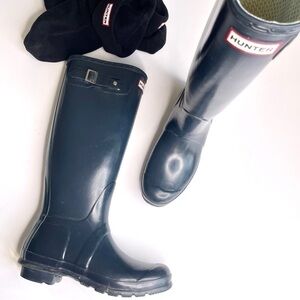 Hunter Dark Blue winter / rain Boots with Black Sock Inserts