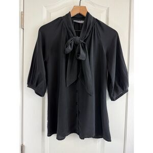 Hunter Dixon by Hunter Bell Women's Black Silk Blouse Tie Neck Button Up Size XS