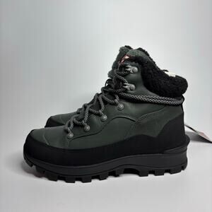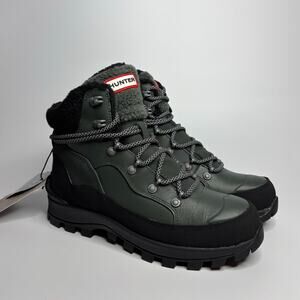 Hunter Explorer Mid Lace Leather Trekking Boots in Olive/Black