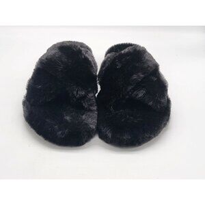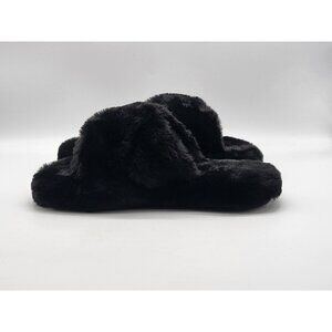 Hunter Faux Fur Flatform Crossover Black Womens Slides Slippers Size 7