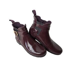 Hunter Gloss Quilted Wine Chelsea Boots 6/7 ?