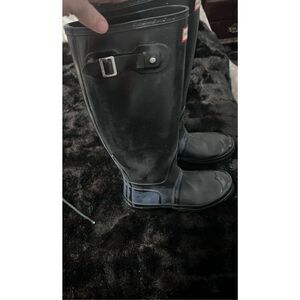Hunter Gloss Tall Black Rubber Rain Boots Women’s Size 8