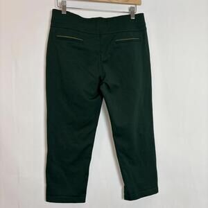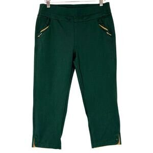 Women's Capri Pants, Dark Green Crop Trousers, Pull-On Capris, Stretch Knit Pants, Casual Everyday Wear, Comfortable Fit, Summer Capris, Spring Fashion, Activewear Capris, Golf Pants, Travel Pants, Elastic Waistband, Faux Pockets, Button Detail Hem, Ankle Length Pants, Cropped Trousers, Athleisure Style, Versatile Bottoms, Breathable Fabric, Easy Care, Work From Home Outfit, Outdoor Activities, Walking Pants, Relaxed Fit, Chic Capris, Stylish Design, Wardrobe Staple, Evergreen Color, Forest Green, Hunter Green, Olive Green, Khaki Accents, Gold Hardware, Quality Apparel.