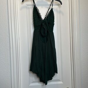 Hunter Green Flowy skater Dress With Tie Back Size Medium