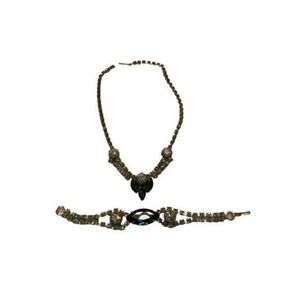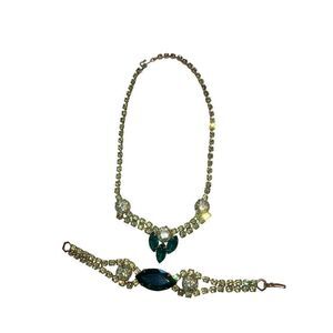 Hunter Green Gem Rhinestone Bracelet Necklace Set Vintage 70s 80s 90s Jewelry Pe
