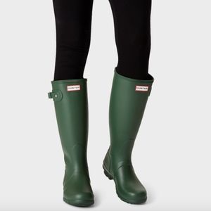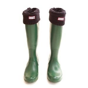 Hunter Original Tall Rain Boots, Size 10F (Women), purchased at Madewell. Includes a pair of black fleece Hunter Wellie Socks! Boots are meant to fit snug, and for me, they were too big everywhere but the footbed until I bought the socks - plus, they're super comfy + keep your feet warm! Boots only worn a handful of times- socks maybe 2x. Shows minor scuffs/wear, soles have majority of tread left. Please ask with any questions and see more items in my closet to bundle and I'll offer a discount!