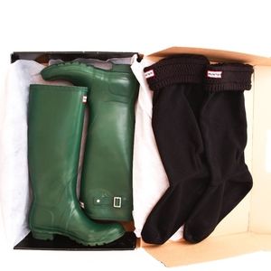 Hunter Green Original Tall Rain Boots 10F w/ Socks