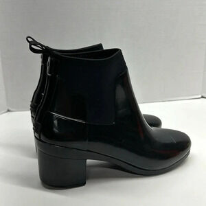 Hunter Heeled Rain Boots Ankle Boots Waterproof Refined Gloss Shiny Black Size 8