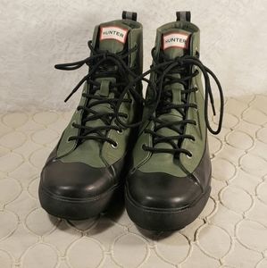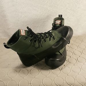 Cute pair of green Hunter high top shoes, mens size 8 1/2, women's size 10 1/2, water proof, super comfortable!