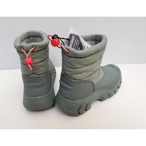 Ankle length, recycled nylon uppers, recycled fleece lining, Ortholite footbed, drawstring topline, kick spur, Hydroguard waterproof internal membrane, traction rubber outsole