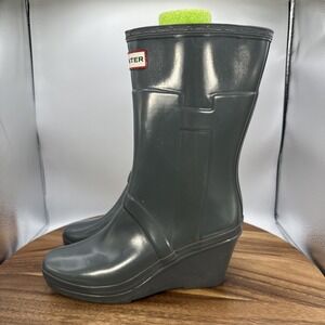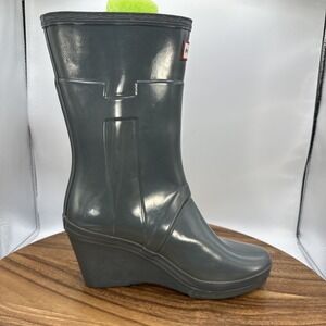 Hunter Kellan Wedge Rain Boots Gray Waterproof Travel Outdoors Women's 7