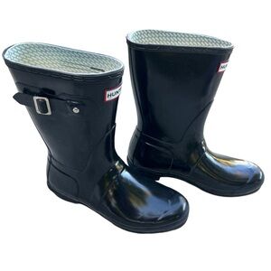 Keep your child's feet dry and stylish with these Hunter black rain boots. Perfect for rainy days and outdoor adventures.